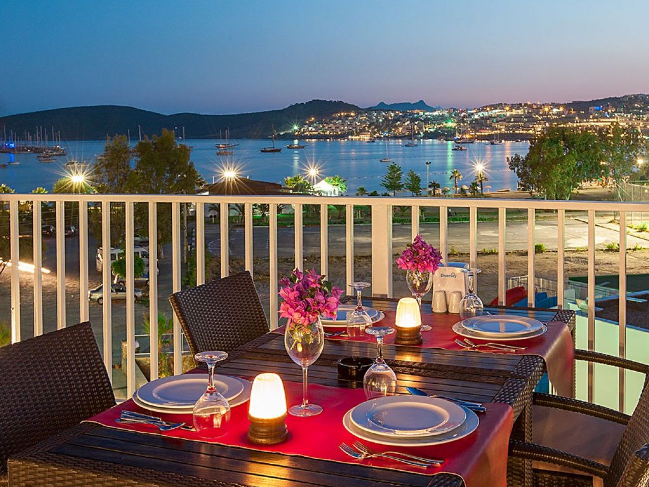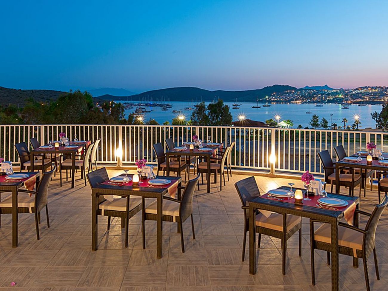 на 35 км. от летището и на 1 км. от центъра на Бодрум, в селището Гюмбет