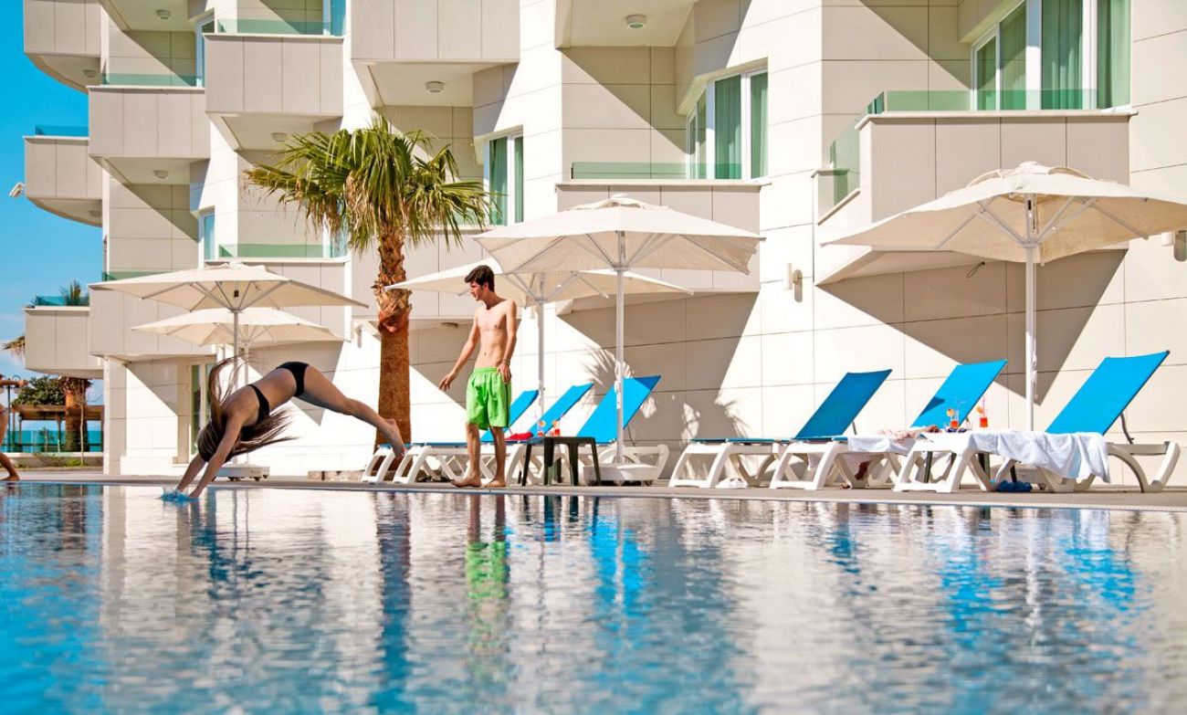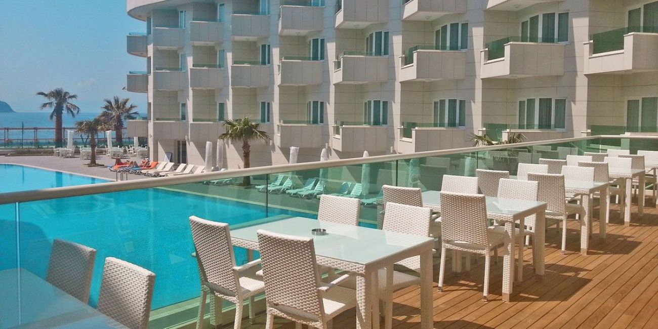 Предлагащ частен плаж на брега на областта Бахчелиевлер в Тургутрейс