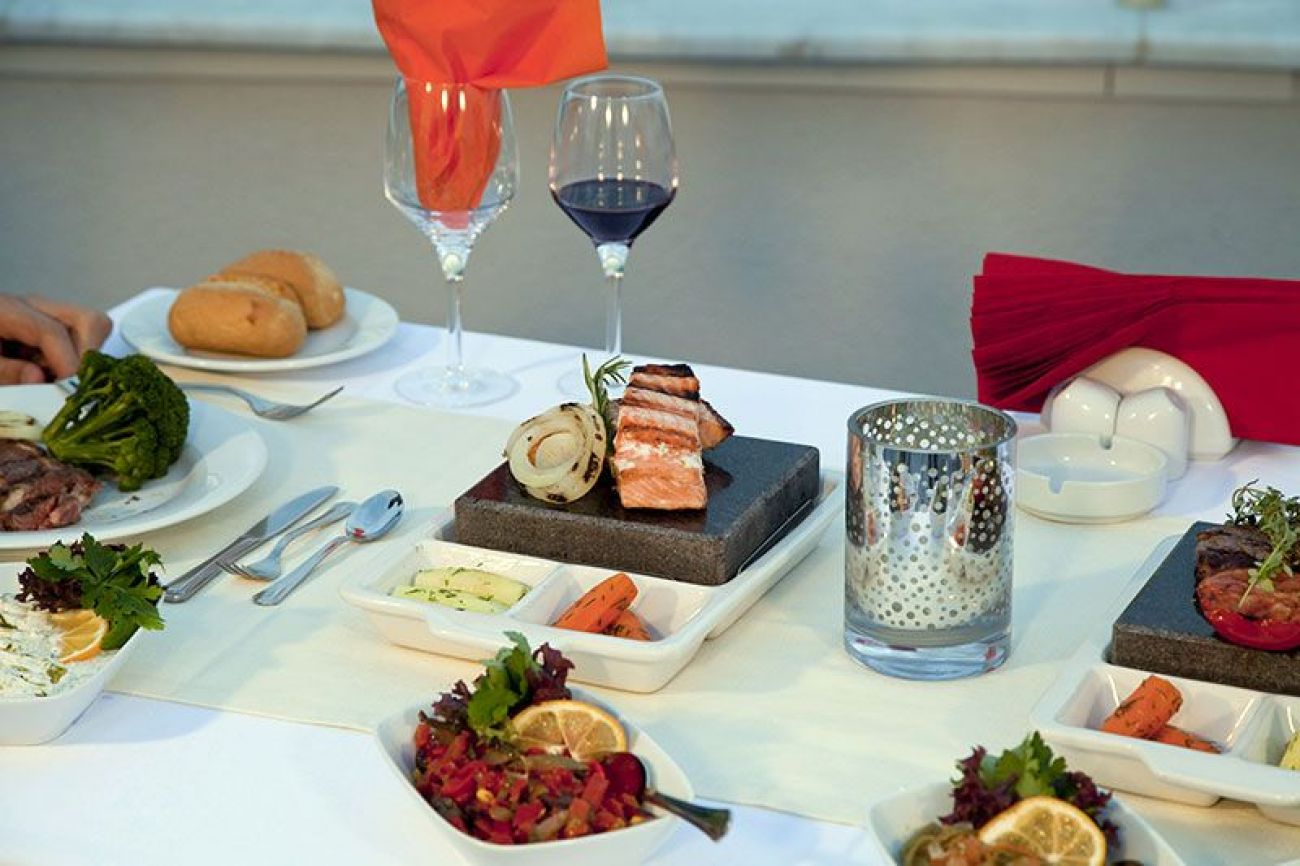 Гостите на Dragut Point South Hotel могат да изпитват различни разнообразие от храни от турски и World cousine в основния ресторант и Hot Rock A-ла-карт ресторант. Когато гостите удоволствия очите им с оглед на острови в Егейско море,