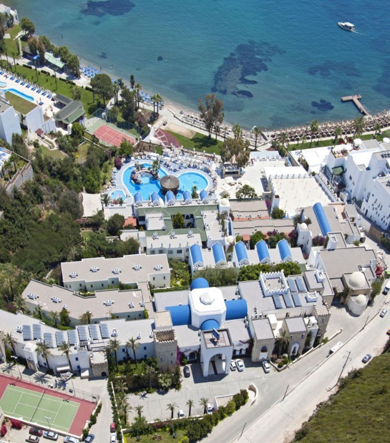 Хотелът е разположен на 35 км от летището и на 1.5 км от центъра на гр. Бодрум, в селището Бардакчи, на брега на морето.