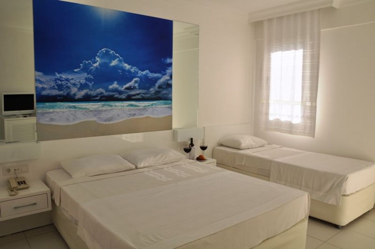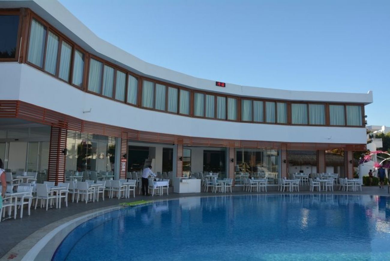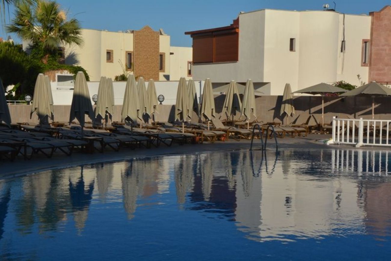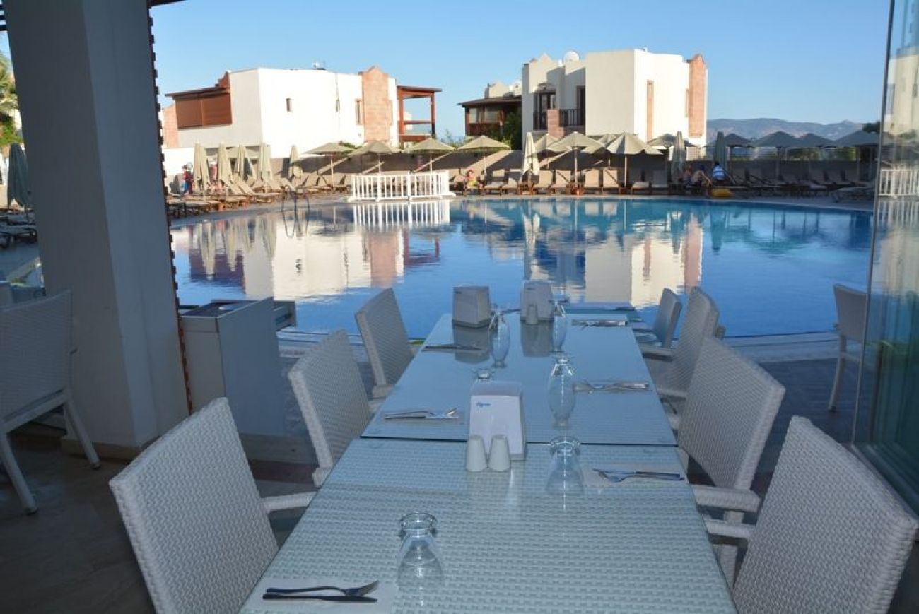 в тих и спокоен район на 55 км от летището на гр. Бодрум, на 24 км от Бодрум, на 6 км от селището Тургутрейс, на 70 м от морето