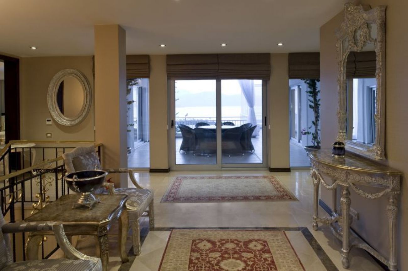 4 двуетажна Superior villa (на втория етаж : спалня, джакузи, WC с душ, мини-бар, тераса, хол с мини-кухня, домашно кино, TV-плазма; на първи етаж: 3 спални с бани, спътникова TV, балкон, сауна, шок-душ, голям хол с домашно кино, TV-плазма, кухня, собствен басейн, макс. 8 чов., 520 м2);