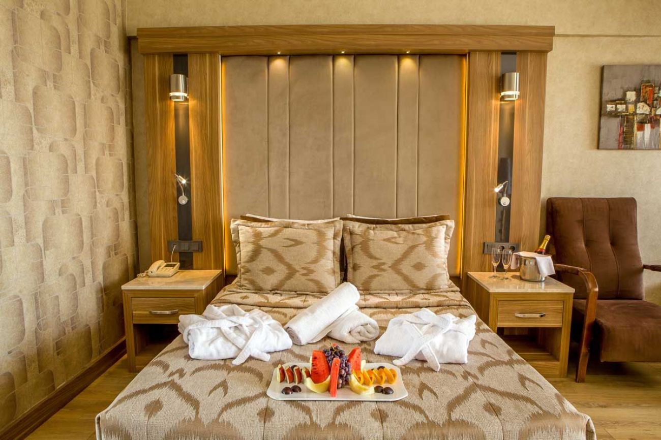 Хотелът е на 8 етажа, общо 385 стаи. Стаите разполагат с вана/душ, сешоар, индивидуален климатик, телевизор, телефон, мини-бар (вода ежедневно, безплатно), сейф (безплатно), под – мокет (Elegance), ламинат (Resort), балкон (не във всички стаи), почистване на стаите – ежедневно, смяна на бельото – 3 пъти седмично, room service (24 часа, платено)