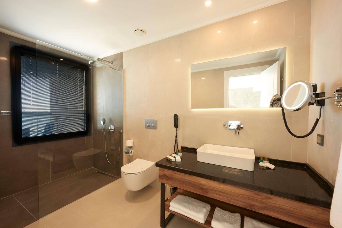 Обща площ 1 096,32 м2. Състои от две централни сгради, блоове А и В, 2 основни ресторанта, 1 a la carte ресторант, американски бар, библиотека, комферентни зали, турска баня, сауна, фитнес зала с инструменти, стаи за масажи , парна бяня, лекарски кабинет, бръснар, фризьор, багаж и сейф, 2 открити басейна и детски басейни за игра, закрит плувен басейн и детски игрален басейн, закрит паркинг за 60 автомобила.
