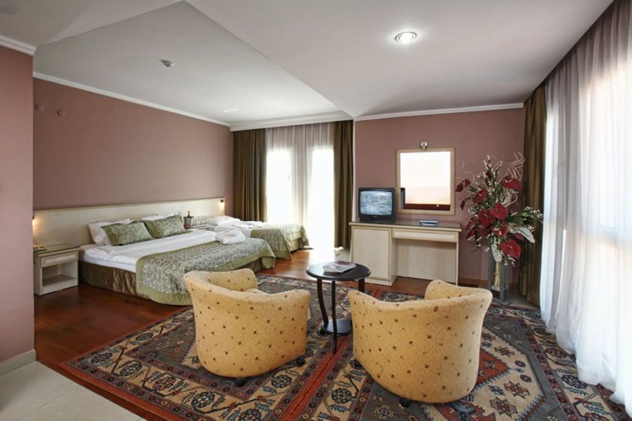 открит и закрит ресторант, 3 бара, 2 конферентни зали, хубава градина, открит и закрит басейн, водна пързалка, ТВ зала, здравен център, магазини, химическо чистене, фризьор, пералня, безжичен интернет, паркинг.