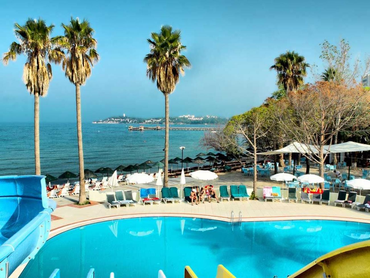 Хотелът е разположен на 75 км. от летището в гр. Измир, и на 5 км. от центъра на Кушадасъ, на брега на морето със собствен плаж. Реновиран през 2010г.