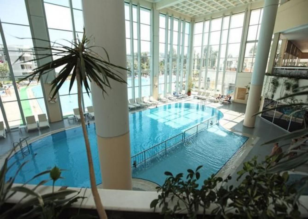 Конферентна зала с 1200 места. Sauna, масаж, турска баня, солариум, фитнес зала, закрити открит плувен басейн с детска секция.