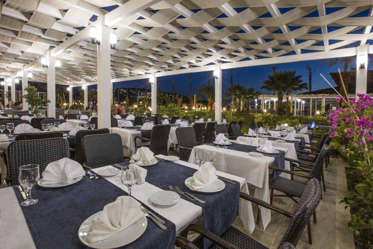 Хотел PALM WINGS EPHESUS BEACH RESORT & SPA, Luxury - предлага 24 часа All Inclusive концепция, освен ресторант, разполага с 4 a'la карт ресторанта (мексикански, италиански, Риба и турски) с предварително записване, за времето на престой посещението на един от ресторантите е безплатно.