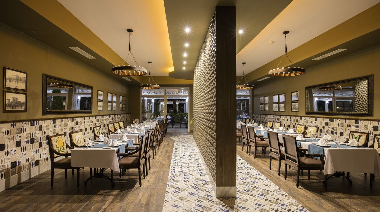 Основен Ресторант, A LA CARTE: Италиански ресторант, Турски ресторант, Мексикански ресторант, Рибен ресторант, Снек ресторант, Гьозлеме, сладкарница.