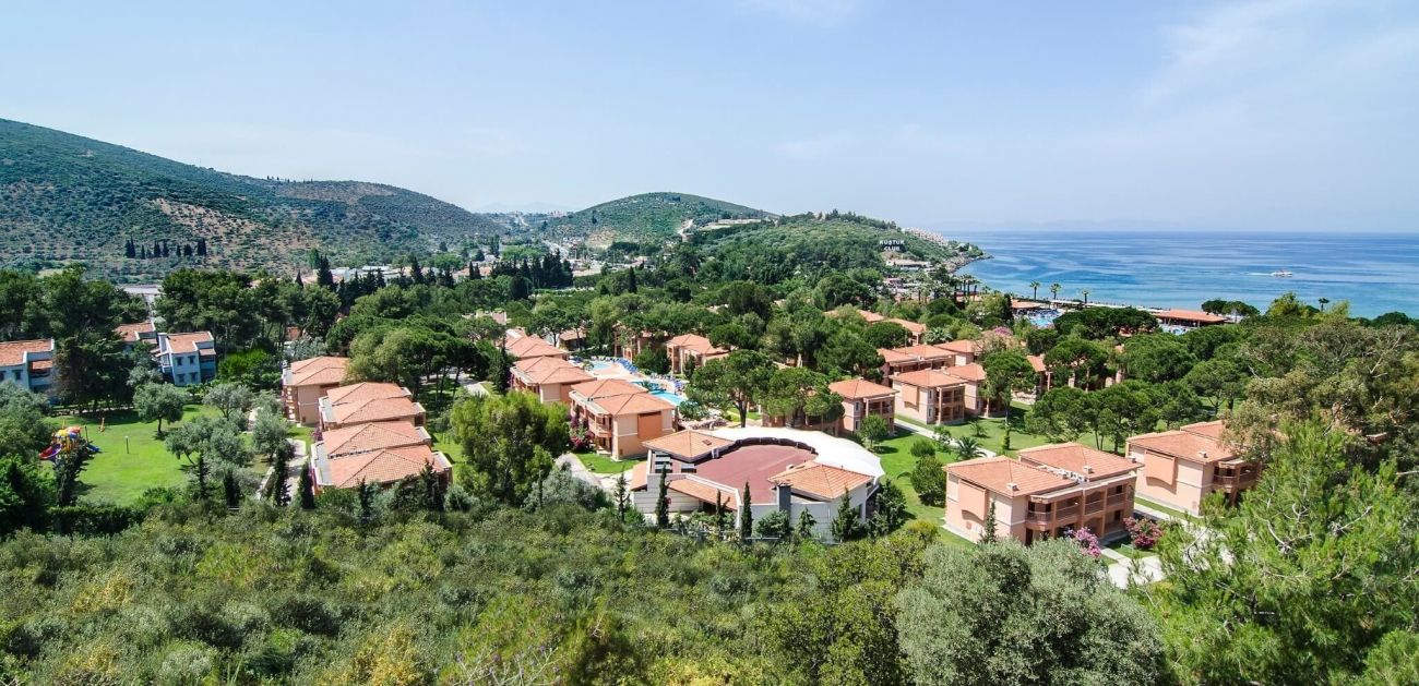 Хотелът се намира на 4 км от центъра на Кушадасъ, на брега на морето и на около 70 км от най-близкото летище в гр. Измир. Хотелът заема площ от 170 000 кв.м с обширна, красива и зелена територия, приятна атмосфера и усещане за спокойствие.