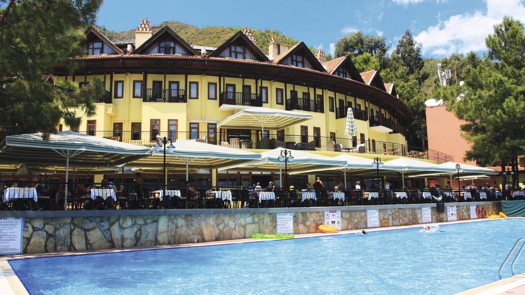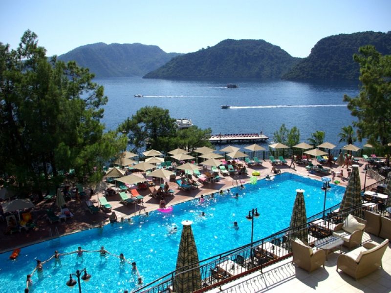На 98 км. от летището в гр. Даламан, 6 км от центъра на Мармарис, 2 kм. от Ичмелер, на брега на морето със собствен плаж – изкуствена платформа опесъчена. последно реновиран през 2011 г.