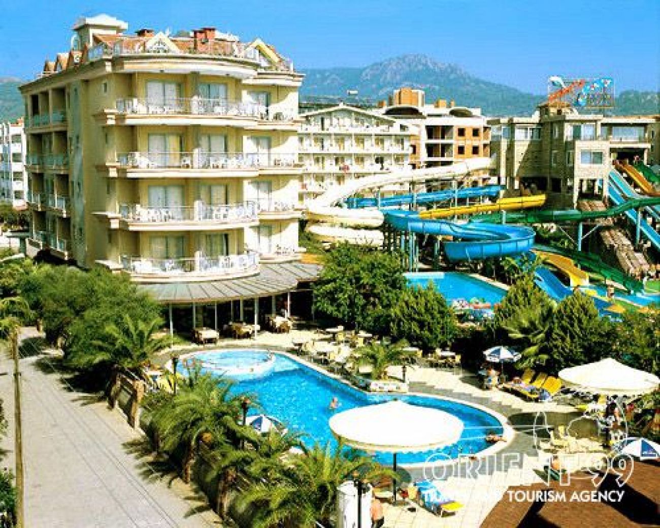 На 90 км. от летището в гр. Даламан, на 2 км. от центъра на Мармарис, на брега на морето – собствен плаж.