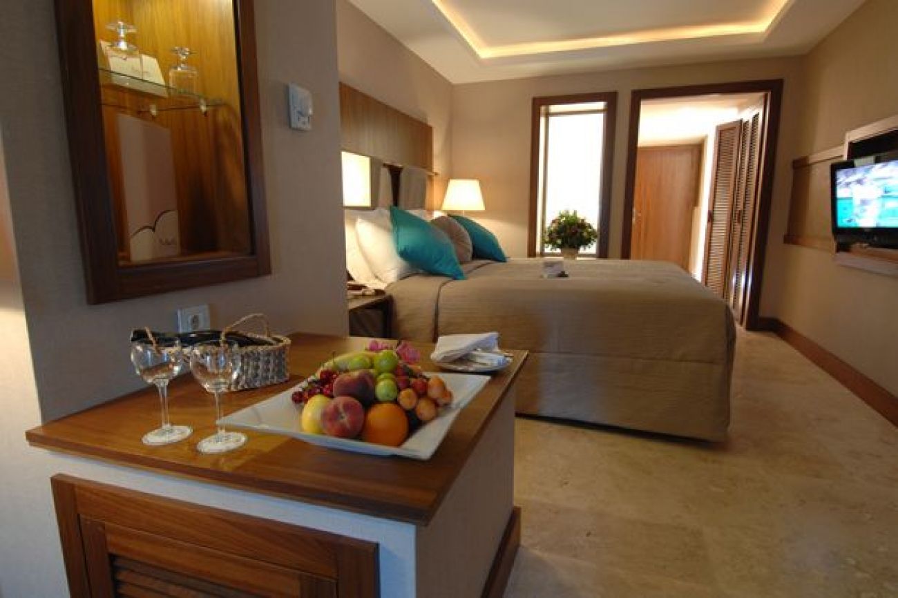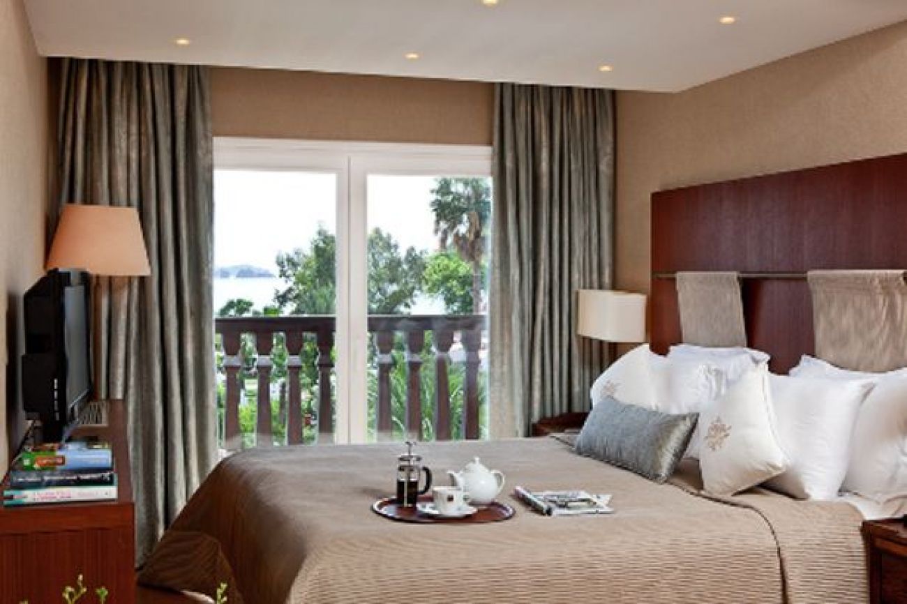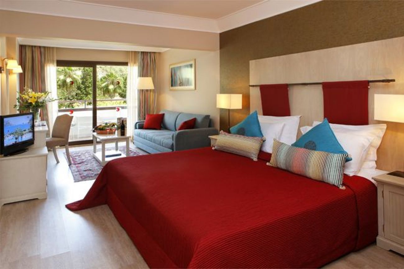 В хотелската част : 208 стандартни стаи (196 със sea view, 10 без балкон, 33 кв.м., маx 4 човека ), 2 двустайни suits (50 кв.м, включват спалня и хол преходни, max 3 човека, банята е с вана и дзжакузи ), 2 двустайни family suits ( хол, спалня непреходни max 4 човека 62 кв.м. ), 2 стаи за инвалиди, 44 стаи за непушачи, 2 SNGL rooms, основен ресторант (шведска маса), 3 ресторантa a-la-carte – срещу заявка и заплащане ( само веднъж седмично безплатно), 5 бара , 5 конферентни зали, 7 стаи за преговори, паркинг, коли под наем, TV - салон.