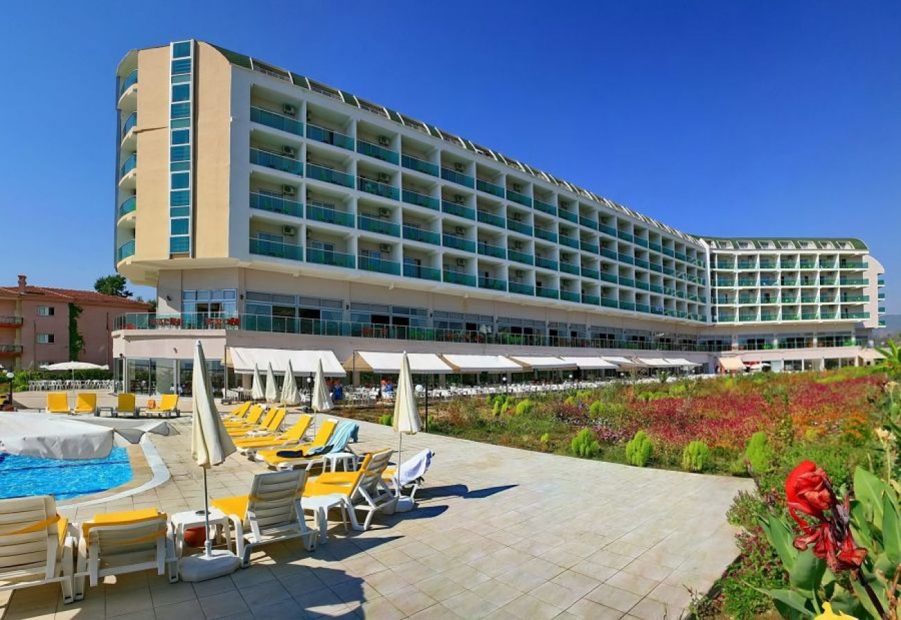 Собствен, пясък/чакъл. Бар на плажа: безплатно. На басейна и на плажа: чадъри, шезлонги, матраци - безплатно. Плажни кърпи: с депозит.
