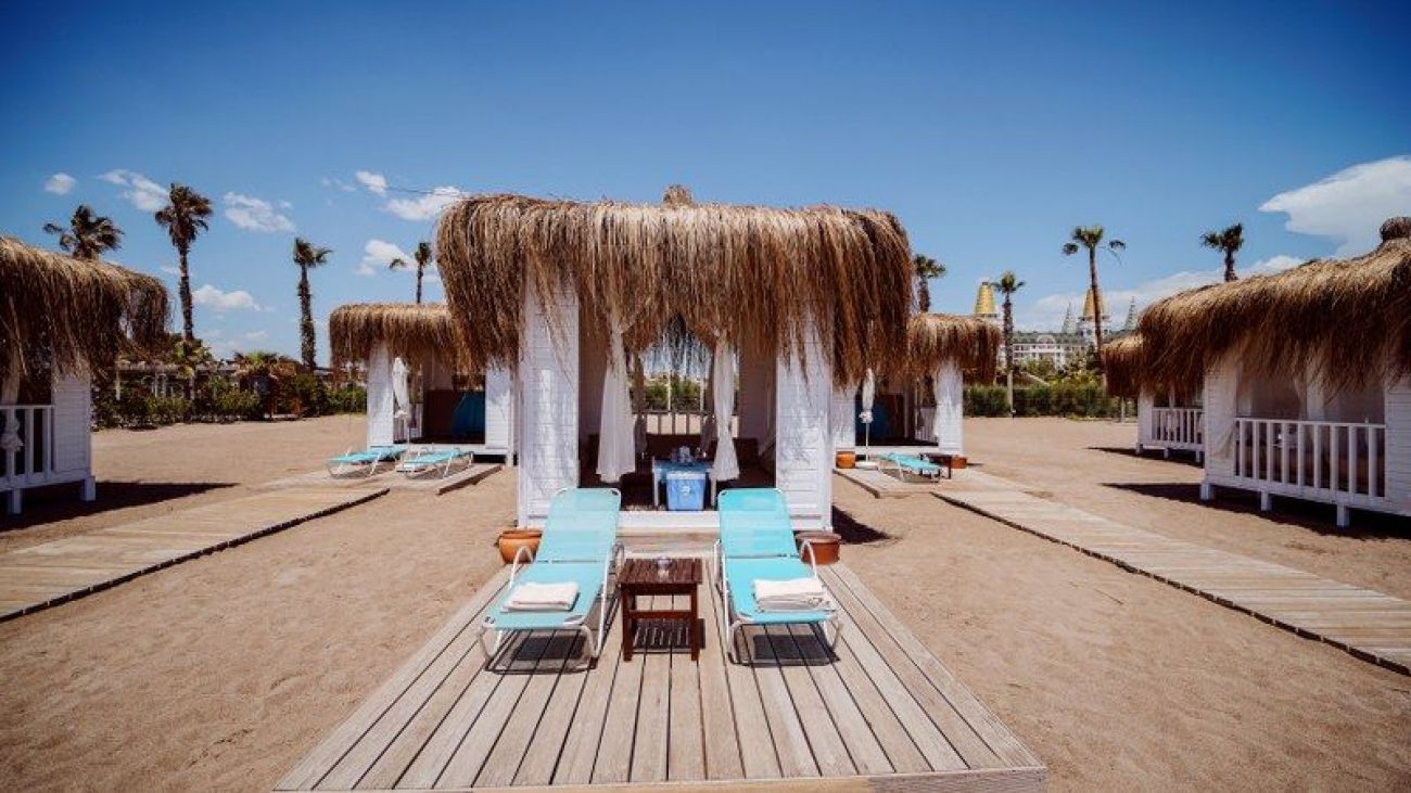 Хотелът има собствен пясъчен плаж на разстояние от около 330 м. На разположение на туристите има безплатен шатъл до плажа. Плажът е награден със син флаг. Чадъри, щезлонги, матраци – безплатно, шатри – срещу заплащане. Бар на плажа, работещ от 10:00 - 18:00 ч.