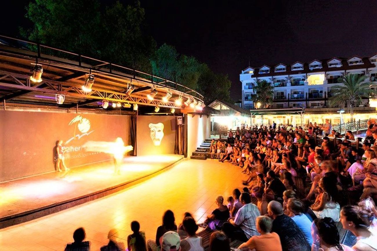 Основен ресторант (предлага диетична храна), 2 ресторанта a la carte: (османска, рибен, с предварително записване - платени; от 01.05 до 31.10), 4 бара, дискотека, 3 открити басейна, закрит басейн (подгрява се през зимата), 2 водни пързалки, Спа център, лекарски кабинет, магазини, фризьорски салон, пералня, конферентна зала.