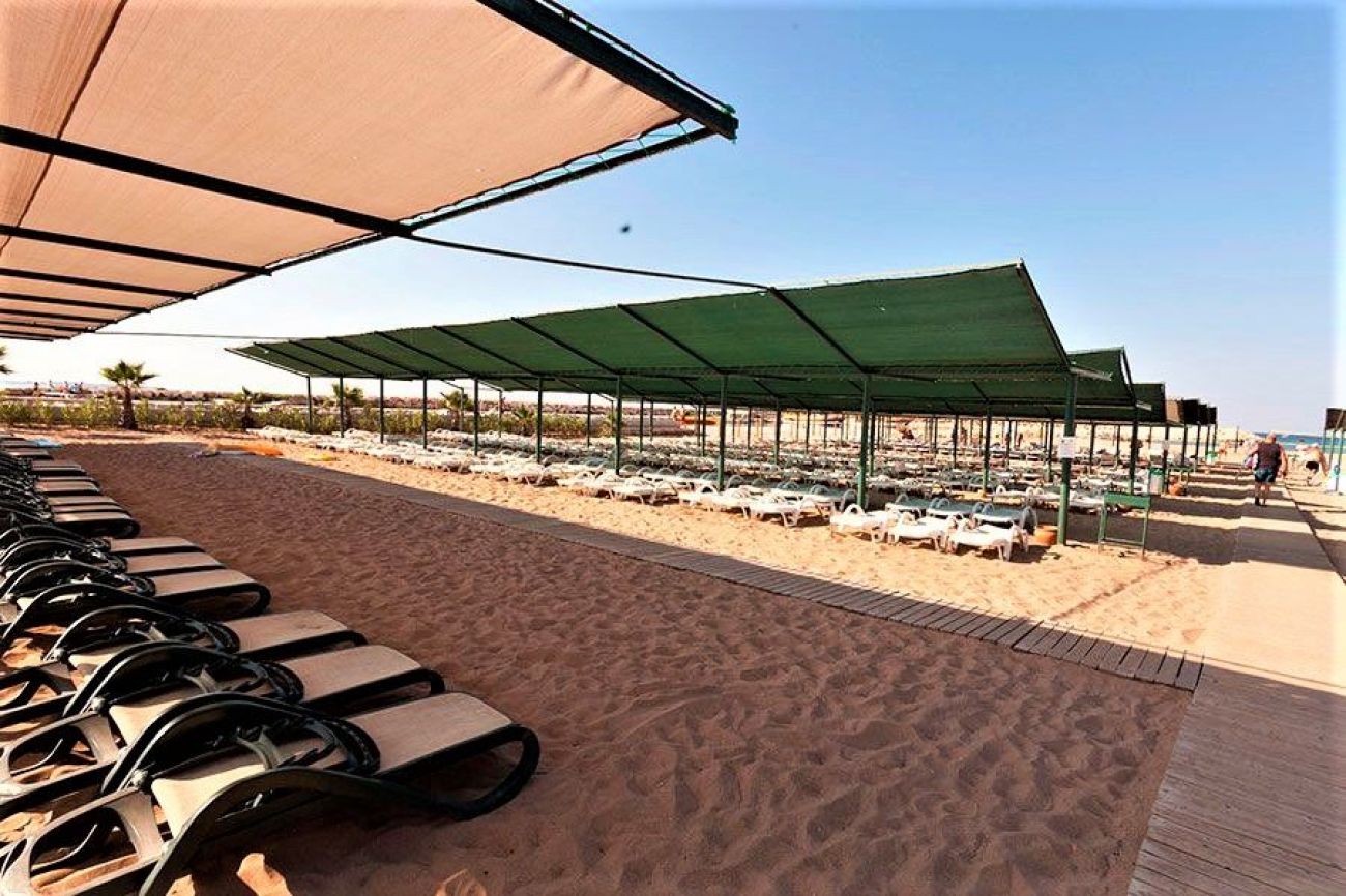 Собствен, пясъчен плаж. Чадъри, шезлонги, матраци на плажа и при басейна - безплатно. Плажни хавлии - безплатно (платена замяна), бар на плажа - безплатно.