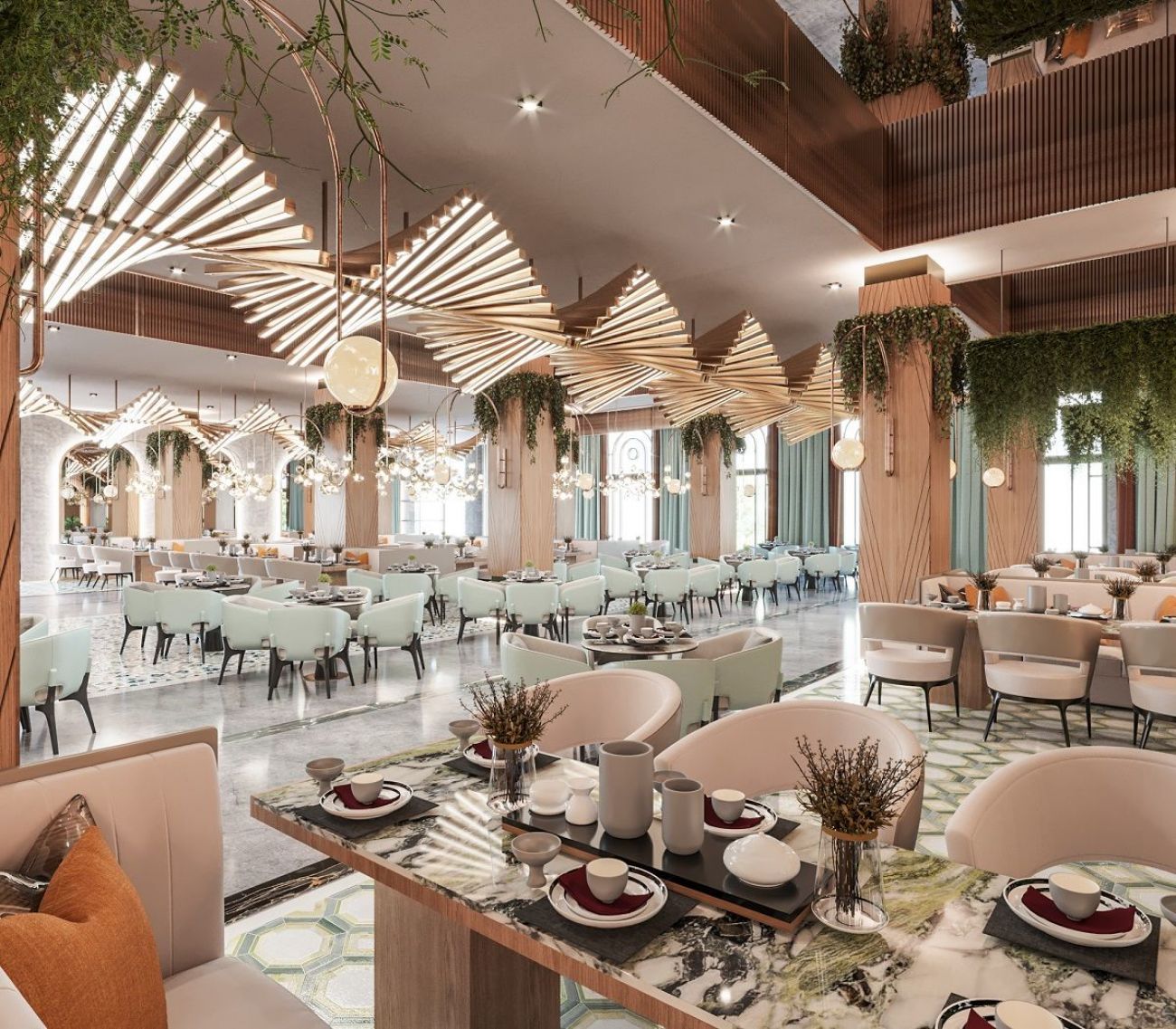 Работно време на основния ресторант: Majesty Main Restaurant: закуска 07꞉00-10꞉00, късна закуска 10:00-11:00, обяд 12:30-14:30, вечеря 19:00-21:00, късна вечеря (супа) 23:00-01:00, леки закуски 01:00-06:00.