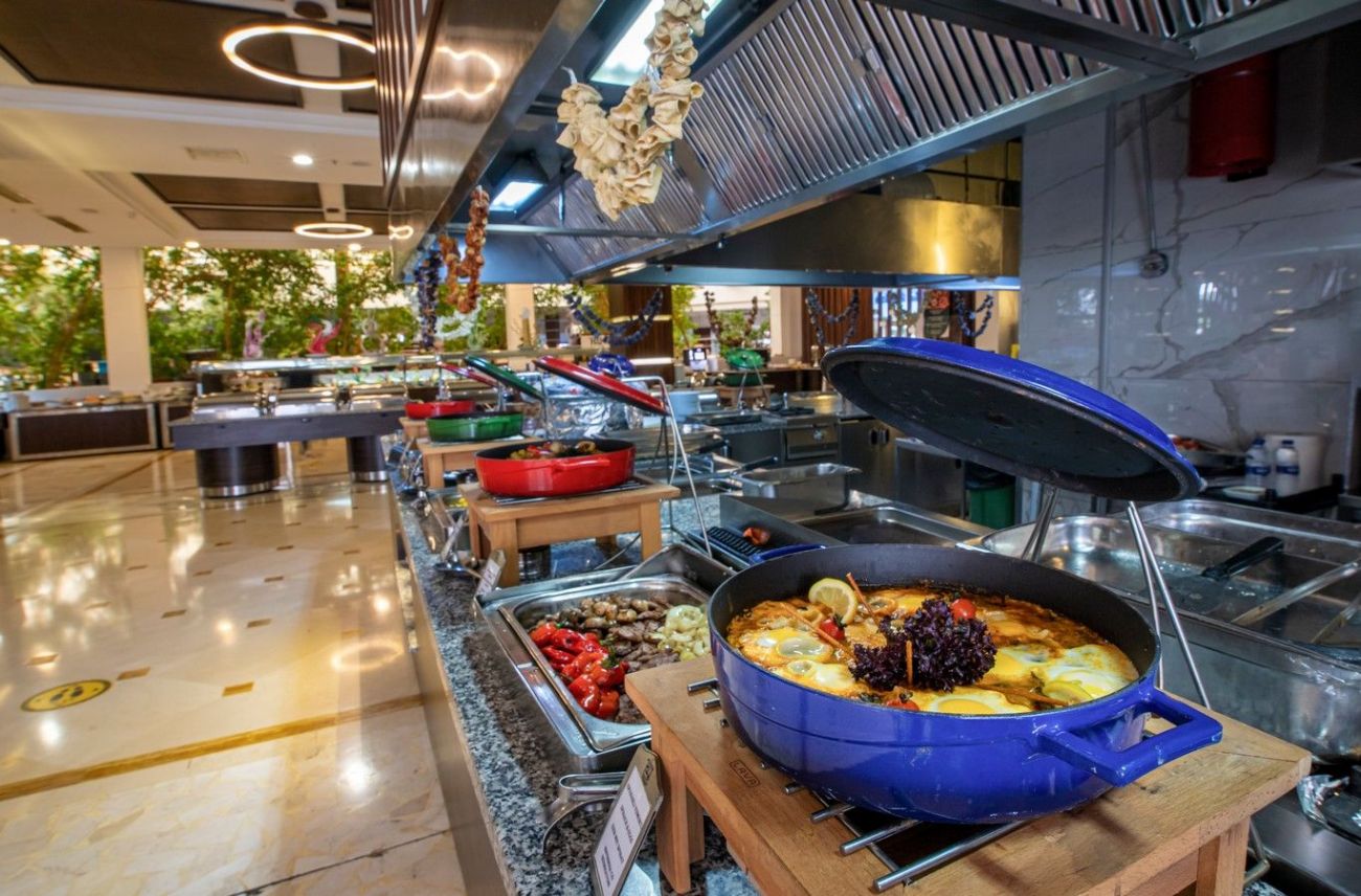 основен ресторант с капацитет 700 места, ресторант Ботаник (част от основния ресторант), лоби бар, сладкарница, диско бар, бар на басейна, бар на плажа, а-ла-карт ресторанти (османски, италиански), открит басейн с 2 водни пързалки, детски басейн, закрит басейн, детски закрит басейн, обмен на валута, коли под наем, пощенски услуги, мини клуб, бебешко креватче, фризьорски салон, магазини, пране, фотограф, 3 конферентни зали, wireless