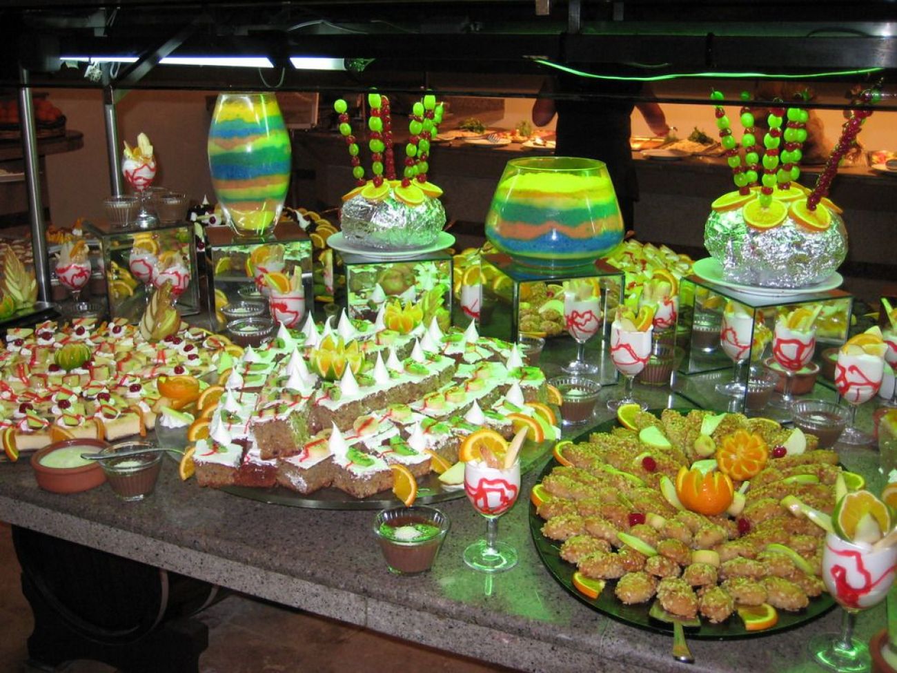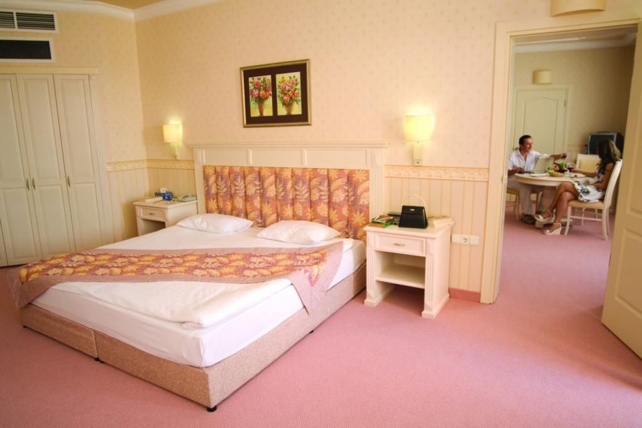 основен ресторант, диетично меню, 6 бара, 3 открити басейна, закрит басейн, 3 водни пързалки, лекарски кабинет, SPA център, фризьорски салон, магазини, пране, 2 конферентни зали (за 30-300 чов.)
