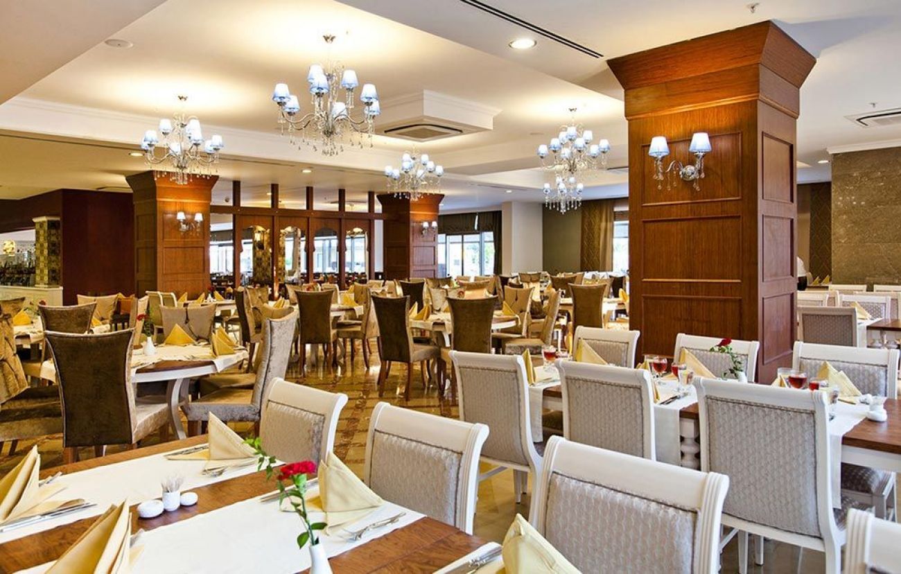 основен ресторант, диетично меню, 2 ресторанта a la carte (интернационален, рибен - с предварително записване, по време на престоя може да се посетят веднъж безплатно), 6 бара, открит басейн, закрит басейн, водна пързалка, лекарски кабинет, фризьорски салон, магазини, пералня