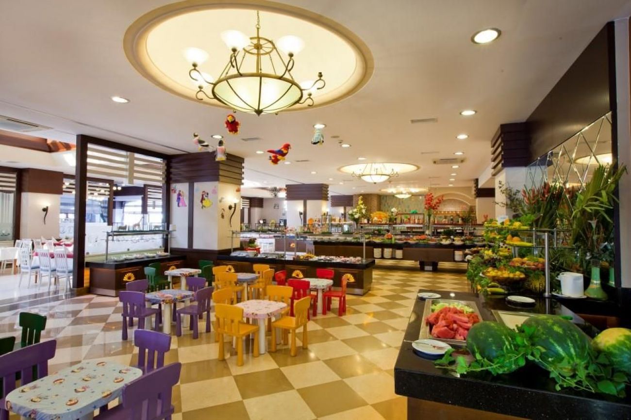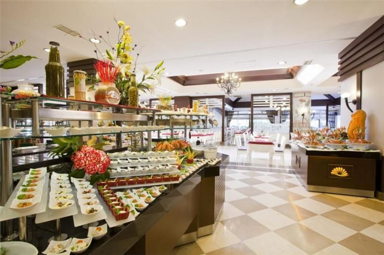 Ол инклузив (от 07:00 - 10:00) от бюфет. Безалкохолни напитки (10:00 - 00:00), кафе и чай (10:00 - 00:00), сладкиши и сладкиши (11:00 - 22:00), малки закуски (11:00 - 17:00), бира (10:00 - 00:00), вино (10:00 - 00:00), местни алкохолни напитки (10:00 - 00:00), избрани вносни алкохолни напитки (10:00 - 00:00), късна закуска (10:00 - 11:00) и среднощни закуски (23:00 - 01:00).