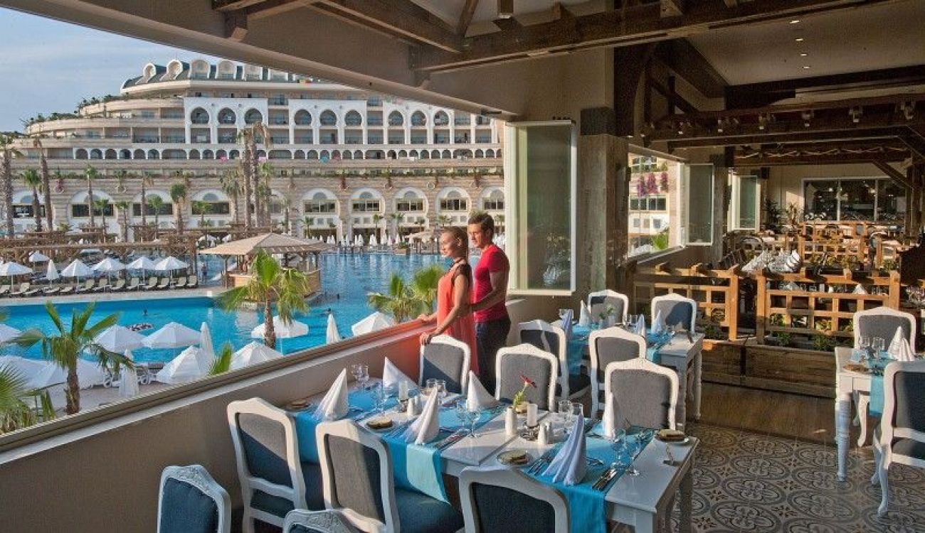 7 ресторанта a-la-carte (турски, рибен, средиземноморски, далекоизточен, международен, Fine Dining (само за възрастни), детски ресторант a-la-carte само за деца - с предварителна резервация, за едноседмичен престой безплатно посещение на 3 ресторанта)