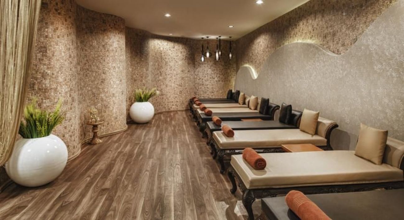 разполага със собствен плаж с безплатни шезлонги и чадъри. Хотелът предлага открити басейни, водни пързалки и спа удобства