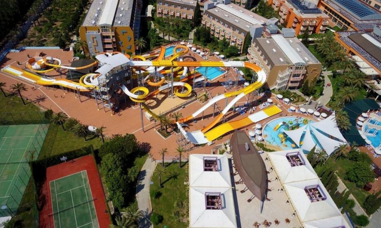 Основен ресторант, бар, открит басейн, водни пързалки, SPA център с турска баня и сауна, фитнес център, детски басейн, детска площадка, мини клуб с детски аниматори, мини дискотека, целодневна анимационна програма със спортни и развлекателни дейности, тенис корт, баскетбол, плажен волейбол, мини футбол, безжичен интернет в лоби.