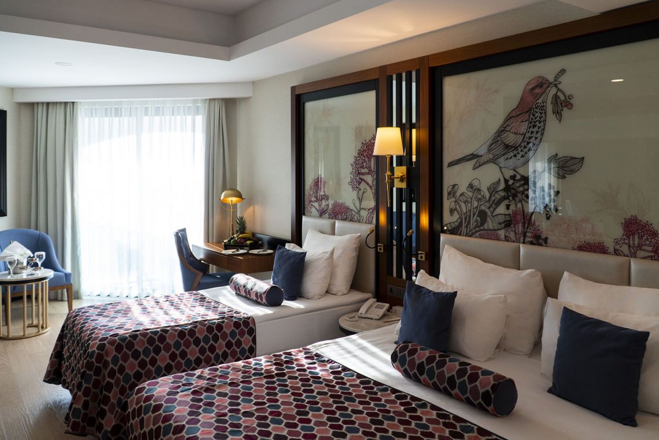 Всяка стая е оборудвана с централен климатик, сателитна телевизия, телефон, баня с душ, сешоар, мини-бар (вода, безалкохолни напитки, бира - ежедневно попълване, безплатно), чехли, сет за кафе и чай, сейф (безплатно), Wi-Fi (безплатно0, балкон, под - ламинат.
