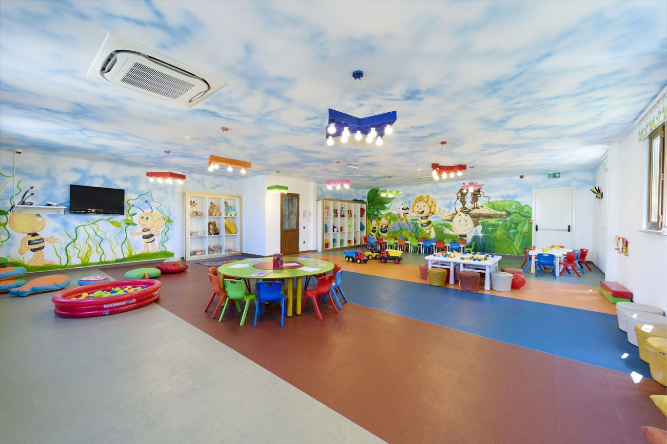 мини клуб 4-12г., мини диско, детски бюфет, детски басейн, 6 детски водни пързалки, лунапарк (безплатно).