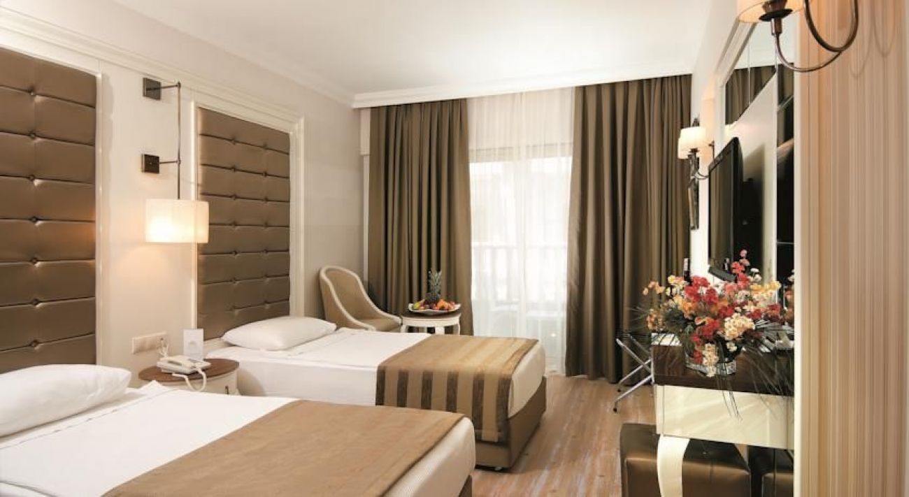 основен ресторант a la carte ресторат (турски и рибен – с предварителна резервация, 1 безплатно посещение за седмица, алкохолните напитки са срещу доп.заплащане). 4 бара 2 открити басейна закрит басейн 2 водни пързалки (за възрастни) библиотека лекарски кабинет фризьорски салон козметичен салон обмяна на валутаrent-a-car паркинг.За деца: детски басейн детска площадка мини-клуб (4-12 год.) детегледачка (платено)