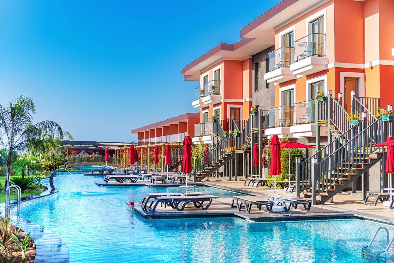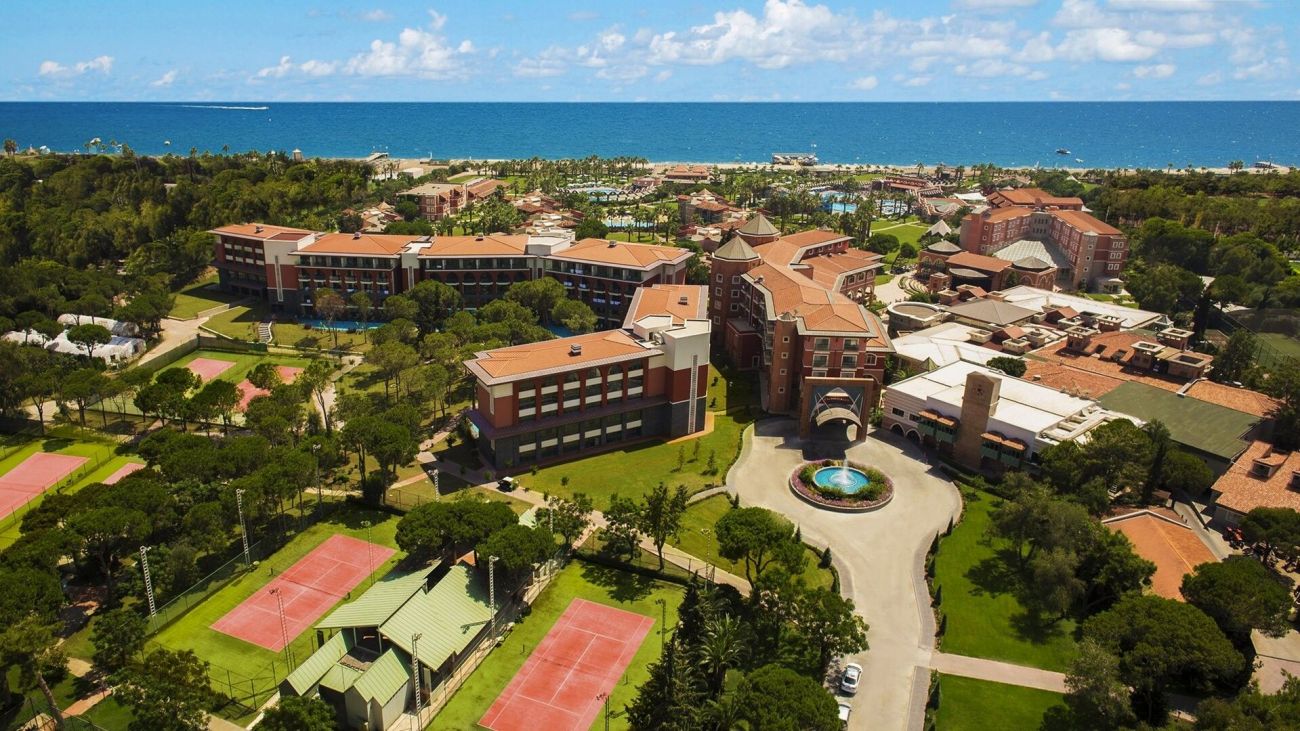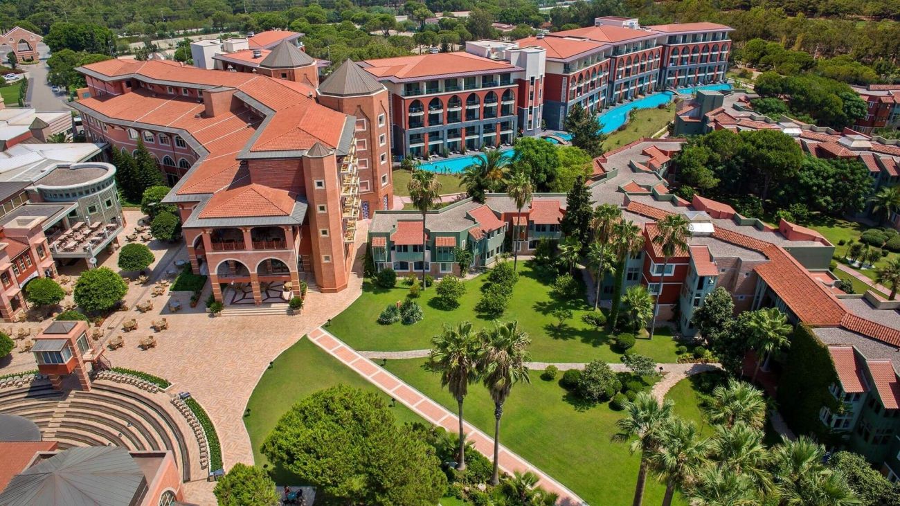 Club Mega Saray 5* е елегантен хотелски комплекс, заемащ обща площ от 121 680 кв.м. Намира се на 30 км от най-близкото международно летище в град Анталия, на 35 км от центъра на Анталия и на 7 км от селището Кадрие.