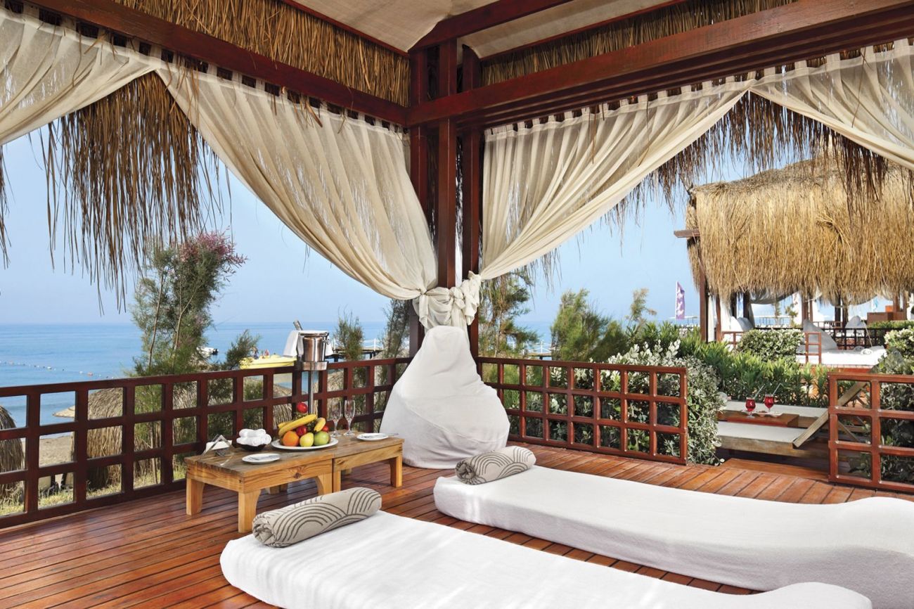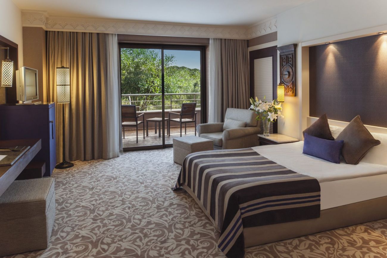 вана, сешоар, халат, чехли, плодове (в деня на настаняване), централен климатик, индивидуален климатик (за Villas), телевизор, телефон, мини-бар (безалкохолни напитки, мляко и бира се зареждат ежедневно, безплатно), сейф (безплатно), подова настилка - мокет (Superior Suite, Premier Suite мокет и паркет; Ela Prestige Suite, Еla Palace, Sultan Palace паркет и мрамор), балкон или тераса, безжичен интернет (безплатно), почистване на стаята - ежедневно, смяна на спалното бельо - ежедневно, room service (от 02:00 до 07:00 по меню - безплатно, за инвалиди - 24 часа (безплатно)), Интернет Wi-Fi (безплатно)