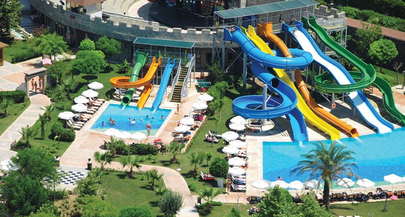 3 открити басейна (2000, 200 и 80 кв. м), 2 закрити басейна (150 и 10 кв. м), водни пързалки, анимация, амфитеатър, кино, музика на живо, дискотека (безплатно), обмен на валута, магазини, Интернет кафе (срещу заплащане), конферентна зала, паркинг, Турска баня, сауна, фитнес център, тенис, дартс, мини-футбол, плажен волейбол, баскетбол, тенис на маса, кану, стрелба с лък, безжичен интернет във фоайето на хотела.