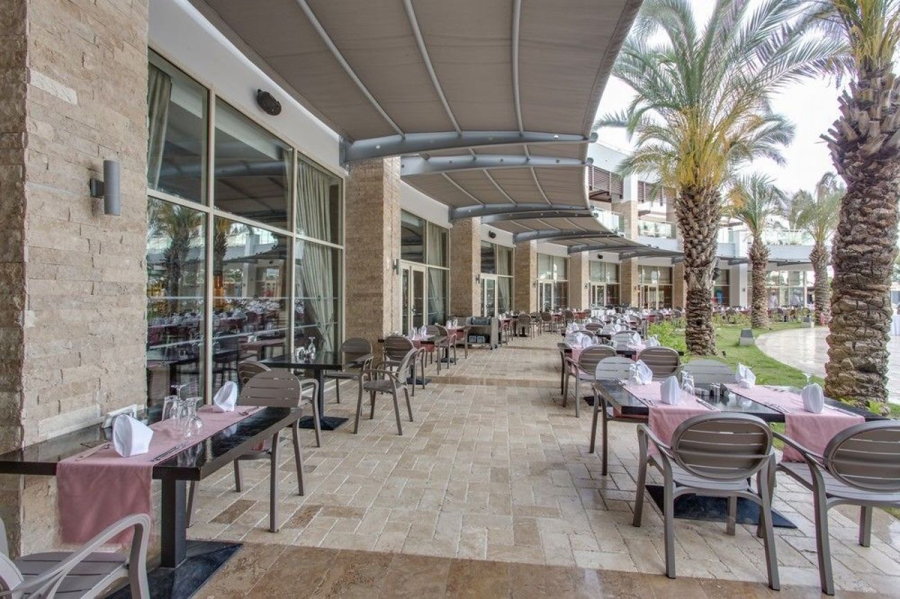 Хотелът е разположен в района Лара, на брега на морето, на 12 км. от центъра и на 10 км. от летището на Анталия.