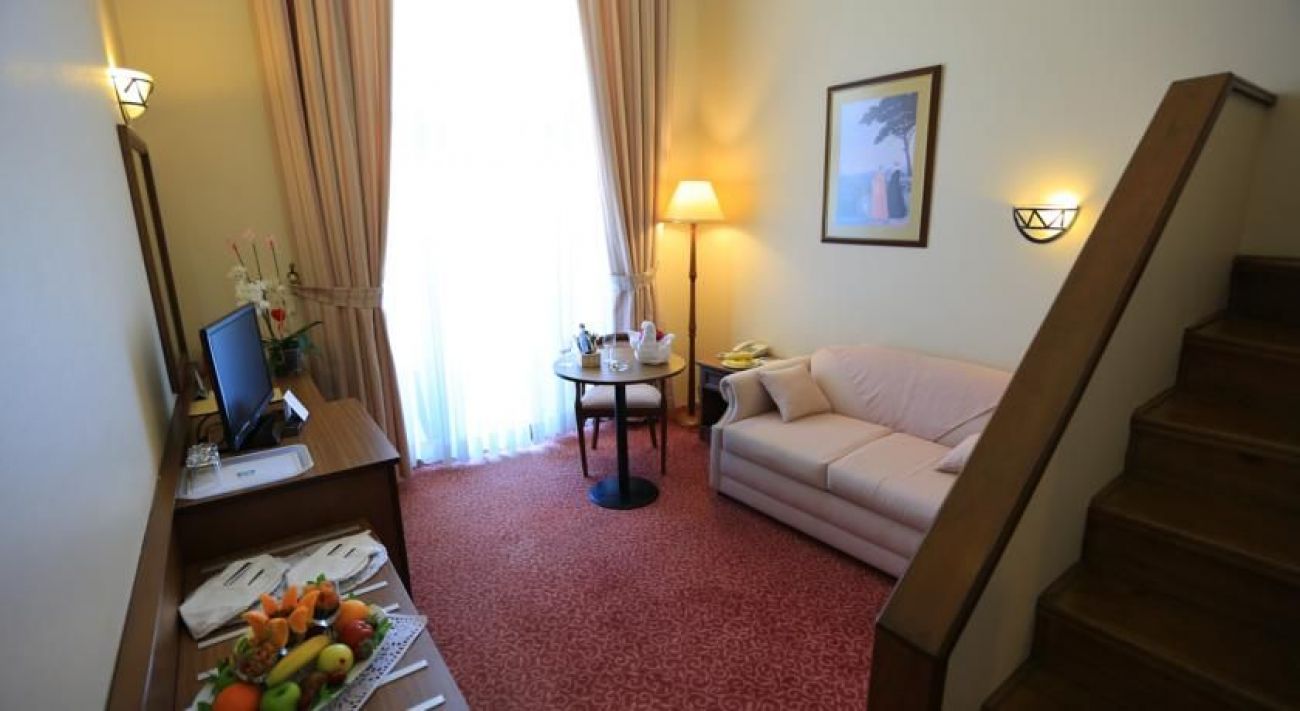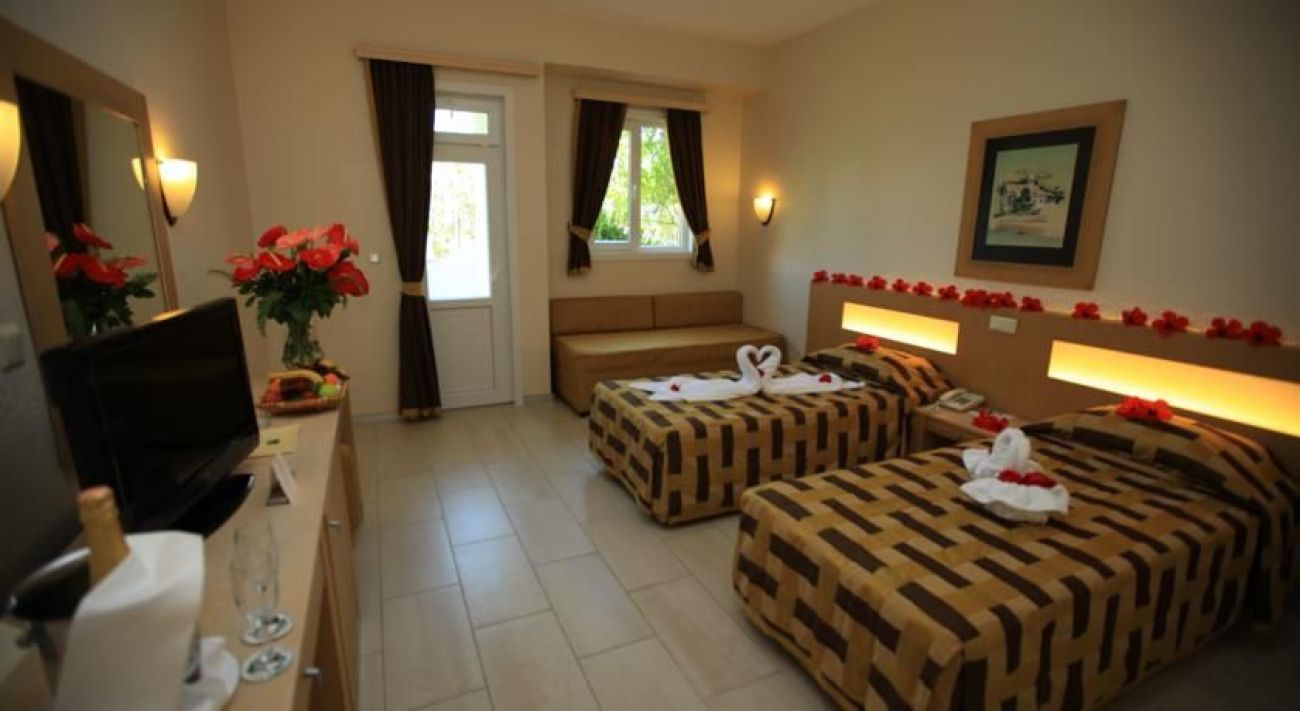 Хотелът се състои от основно 4-етажно здание Panorama, 3-етажен корпус Family House, 4-етажен корпус Fortuna и десет 2-етажни вили Club House (всички са с изглед към градината). Panorama: 122 standard room (макс. 3+1 чов., 30 м2); 7 двустайни suite room (хол, спалня с врата (french bed), 2 балкона, електрически чайник, макс. 3+1 чов., 55 м2). Fortuna: 111 standard room (макс. 2+1 чов., 26 м2); 27 duplex room на две нива (на първо ниво: мека мебел, баня с вана, балкон, на второ ниво: спалня без врата c french bed, баня с душ, макс. 3+1 чов., 35 м2). Family House: 10 двустайни family room (2 спални с врата, 2 TВ, балкон, макс. 5 чов., 44 м2). Club House: 240 club room (макс. 3+1 чов., 26 м2).