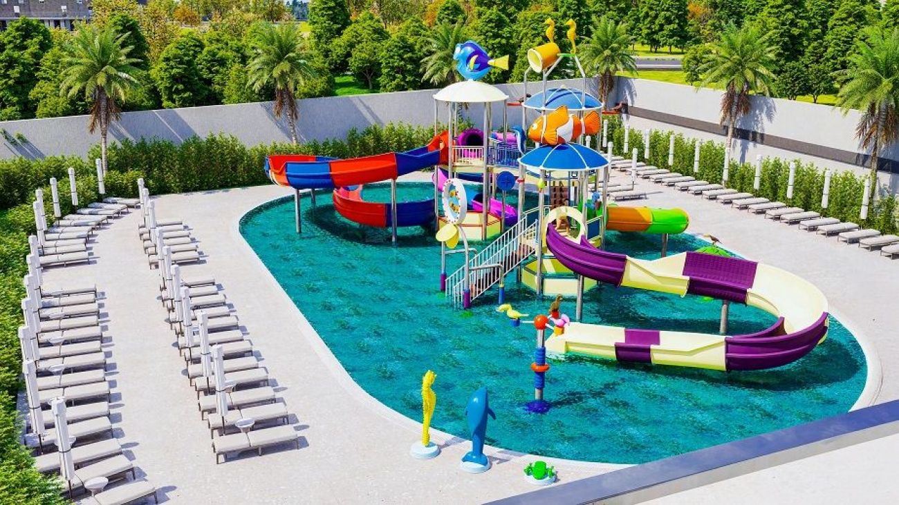 Забележки към басейна и пързалките: 1 външен басейн 1200 кв.м., без отопление.
