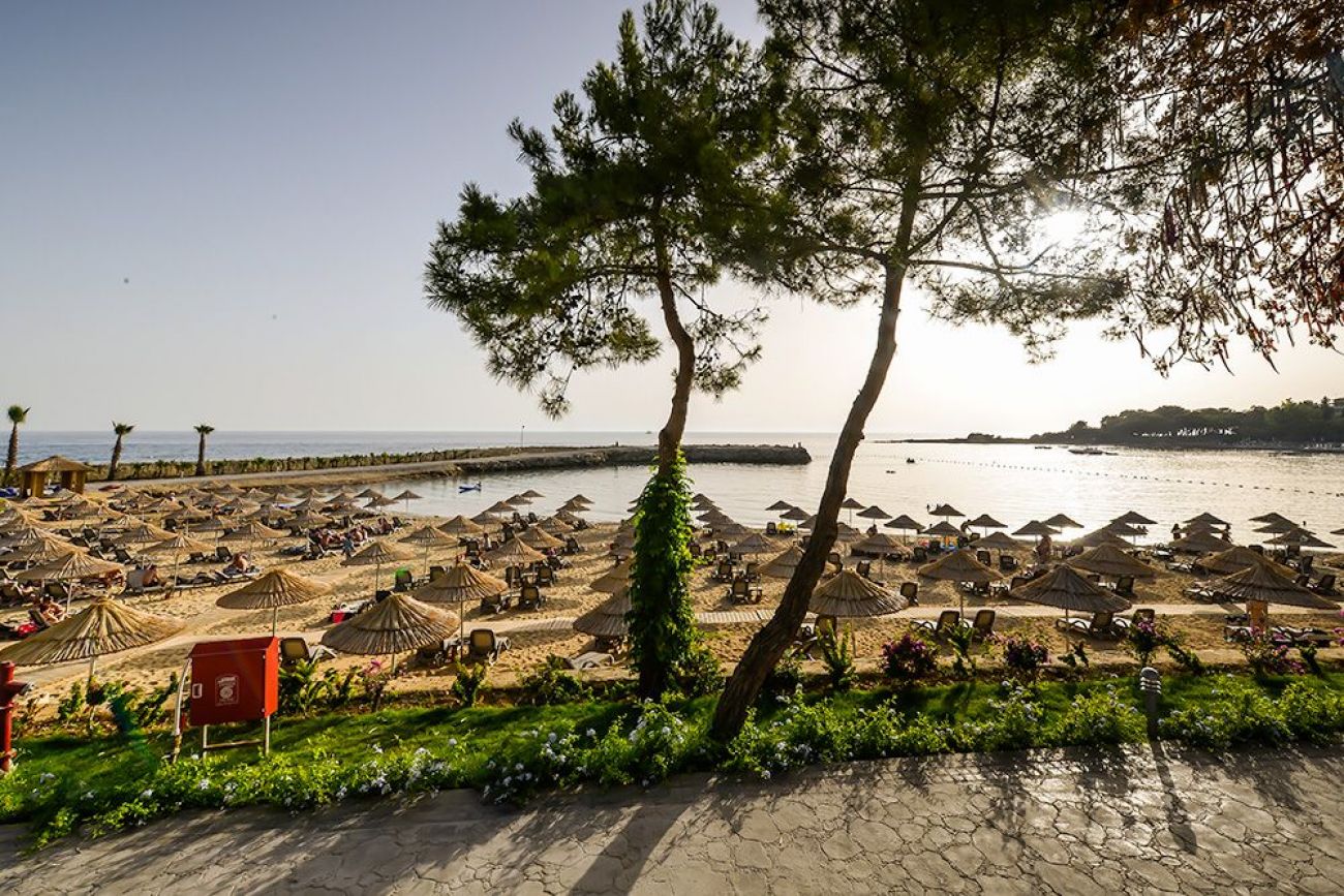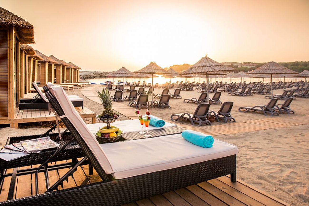Собствен, пясък. Бар на плажа - безплатно. На басейна и на плажа: чадъри, шезлонги, матраци - безплатно. Плажни кърпи - безплатно.