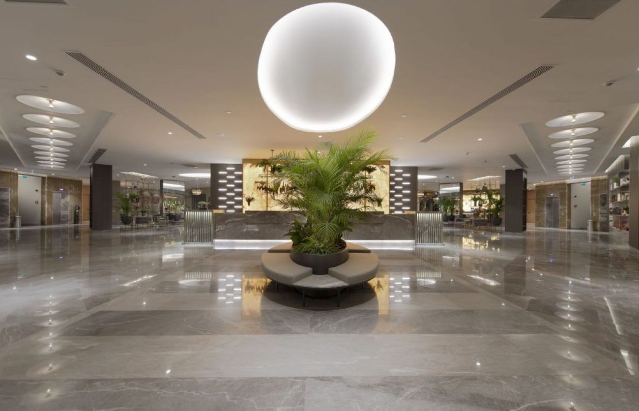 а, волейбол, зала за игри, тенис на маса, дартс, сауна, масажи, турска баня, детски клуб, различни магазини, тенис на корт, 1 басейн за възрастни и 1 за деца