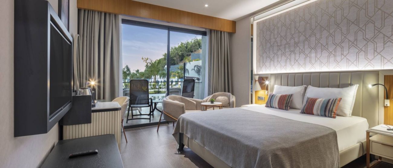 Хотелът предлага на своите гости 453 стаи, сред които стандартни / 30 кв.м. /, супериор / 40 кв.м. /, фамилни / 50 кв.м. /. Всички стаи са оборудвани с централен климатик, телевизия, телефон, баня с душ, сешоар, минибар, сейф, балкон, кетъл комплект за чай или кафе , безжичен интернет. Почистване на стаите – всеки ден, смяна на спалното бельо – 2 пъти седмично. Стаите са с ламинат или паркет !