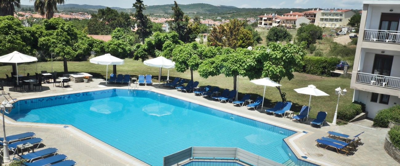 Разположение: Разположен в красивото селилище Никити и на 400 метра от плажа, който е с награда Син флаг за чистота.