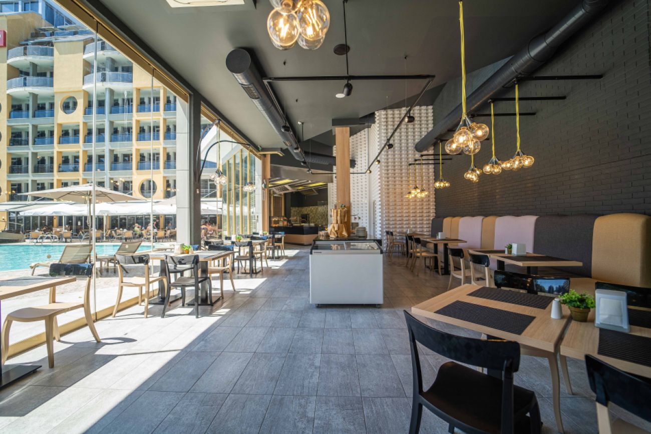 Бар на басейна: 10:00 - 23:00 ч. - местни и избрани вносни алкохолни напитки, безалкохолни напитки.