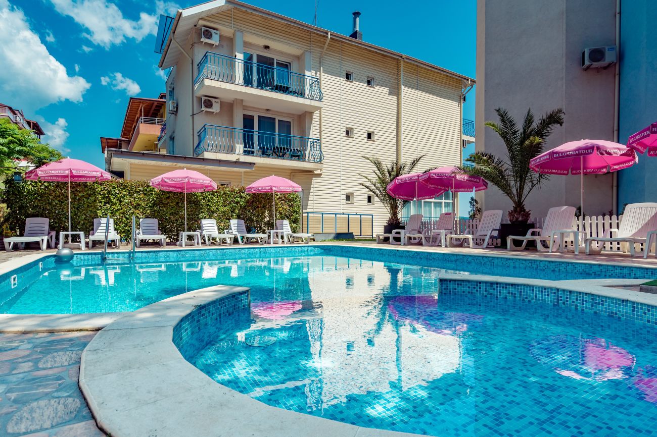 - безплатно ползване на чадъри и шезлонги на басейна на комплекс "Дюни "- Приморско
